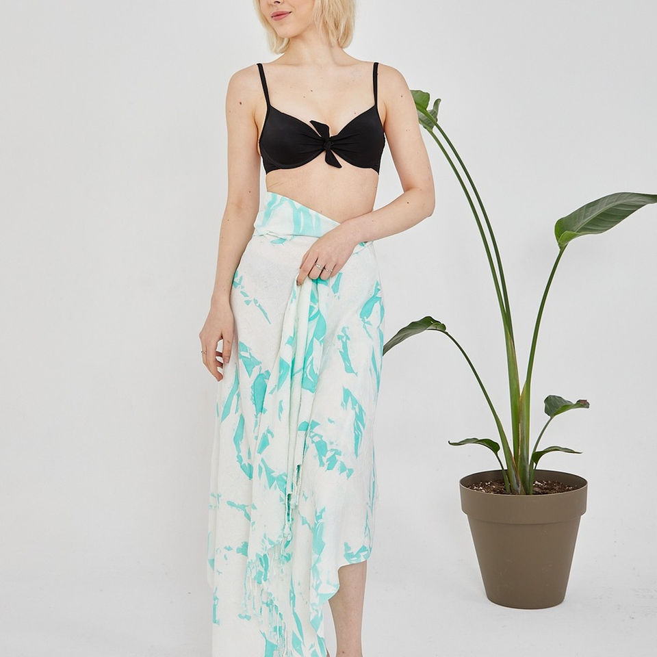 Cottoviva Kadın Pamuklu Tencell Peştemal Ayna Desenli - Turkuvaz